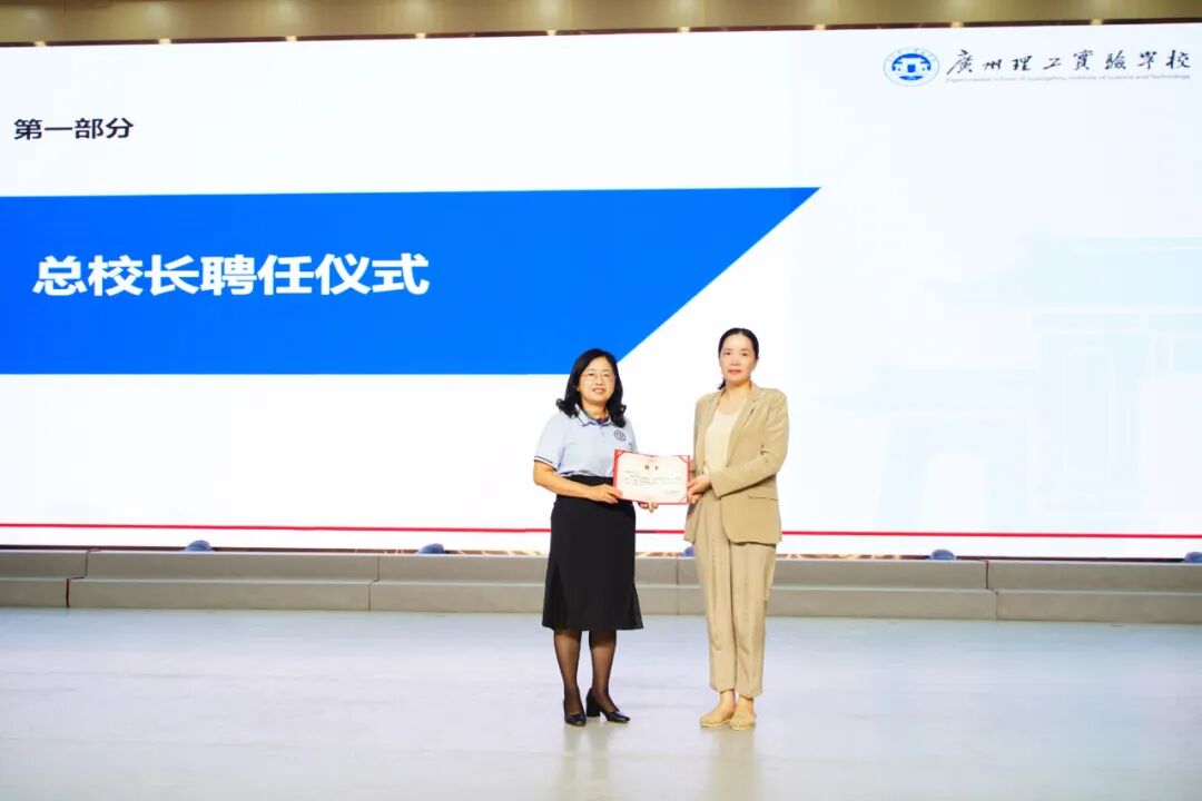 2025年8月26日上午,广州理工实验学校校园内洋溢着庄重而热烈的气氛。学校在全校教职工大会上隆重举行了黄燕文总校长聘任仪式。