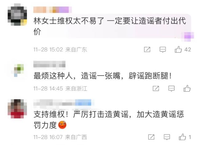 2024年5月,法院一审判决造谣者黄某公开道歉并赔偿20万元。判决后造谣者上诉,竟造新谣说和林女士“是恋人分手冲动发布”。