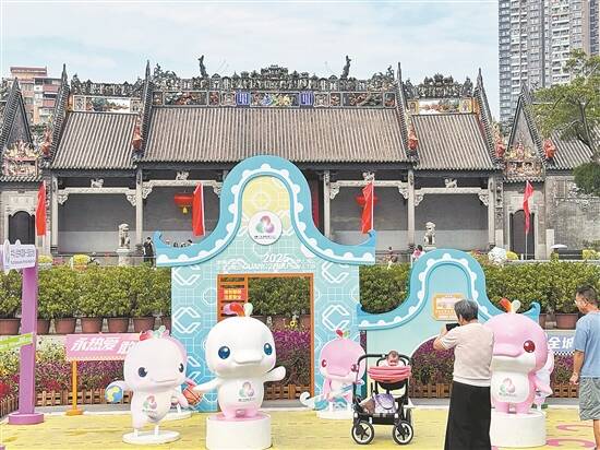 市民游客“打卡”广州陈家祠前设置的全运会主题装置 通讯员供图